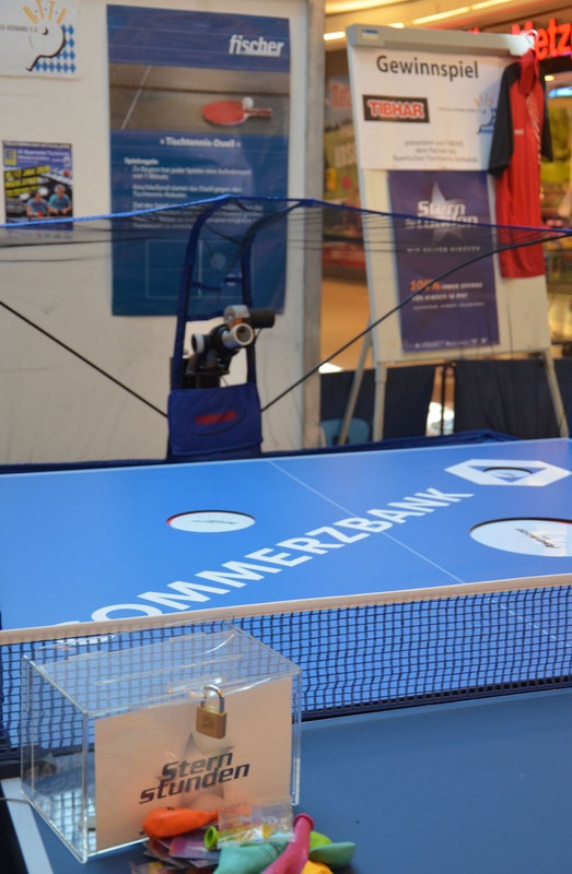 Ein wenig verspätet huschte TT-Nationalspielerin Sabine Winter vergangenen Samstagabend im schicken „Roten“ auf ihren Platz im Auditorium der Münchner BMW Welt, in das sie als ehemalige Preisträgerin zur Verleihung des Bayerischen Sportpreises 2015 geladen war. Für ihre kleine Verspätung hatte Winter eine wirklich gute Entschuldigung: Beim „Tag des Tischtennis“ im Ingolstädter WestPark half sie als Stargast noch kurz davor fleißig mit, Werbung für den Tischtennissport zu machen. Zusammen mit dem amtierenden Bayerischen Herren-Meister Philipp Floritz sowie Para-Ass Tom Schmidberger demonstrierte Winter den Besuchern des Einkaufszentrums Tischtennis der Spitzenklasse. Ein großes Lob gab es von Winter an die Adresse der Organisatoren des Events: „Richtig gut aufgezogen“, bezeichnete sie das, was der SV Buxheim um seinen Abteilungsleiter Alfons Speth mit Unterstützung der Vereine MTV Ingolstadt, TSV Ingolstadt-Unsernherrn, BSV Neuburg, TV Vohburg, Trainer Munir Jassem (Leistungszentrum Ingolstadt) und dem BTTV auf die Beine gestellt hatten. Letzterer sorgte dafür, dass die Besucher auch selbst zum Schläger greifen konnten - ob beim freien Spiel an Tischen verschiedener Größe oder beim „Pong-Gewinnspiel“, bei dem sich die Teilnehmer gegen einen kleinen Obulus mit einer Tischtennis-Ballmaschine messen durften und damit gleichzeitig Gutes taten, denn der Erlös in Höhe von 111 Euro geht an „Sternstunden“, die Benefizaktion des Bayerischen Rundfunks. Für die Gewinner Anja Eckart (Damen), Sebastian Schaer (Herren), Ines Müller (Mädchen U16) und Marcel Frieberger (Jungen U16) gab es ein Trikot - gesponsert von BTTV-Ausrüster Tibhar.