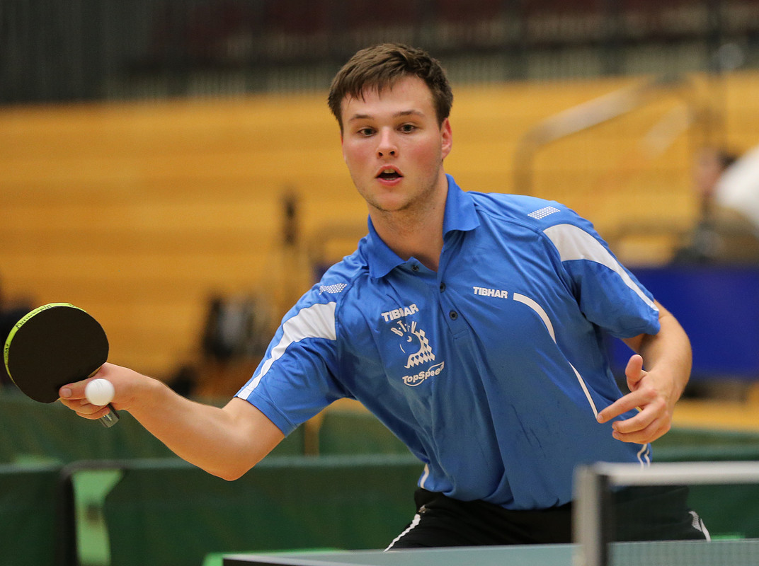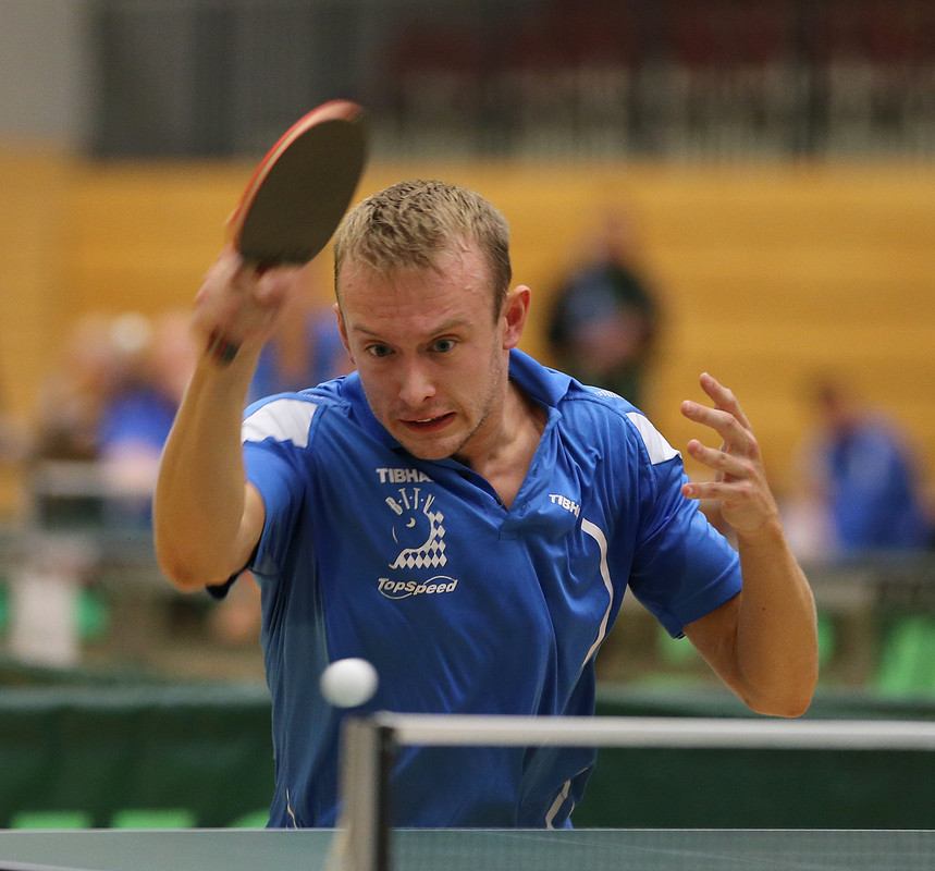 Erfreuliche Nachrichten konnte BTTV-Delegationsleiterin Sandra Peter vom Bundesranglistenfinale der Damen und Herren Top 48 in Chemnitz vermelden: „Mit Alexander Flemming, Nico Christ, Florian Schreiner und Dennis Dickhardt schafften gleich vier unserer sechs männlichen Starter einen Platz unter den besten 13 und damit die Direkt-Qualifikation für die Deutschen Meisterschaften 2016 in Bielefeld; dazu Chantal Mantz bei den Damen.“ Für die weißblauen Spitzenresultate sorgten erwartungsgemäß Alexander Flemming (TV Hilpoltstein) und Chantal Mantz (TSV Schwabhausen), die jeweils den hervorragenden 3. Platz belegten. Beide mussten sich im Turnierverlauf lediglich und erst im Halbfinale den späteren Turniersiegern geschlagen geben: Flemming dem überragenden Nationalspieler Benedikt Duda (WTTV), Mantz ihrer ehemaligen Jugend-Nationalteamkollegin Yuko Imamura (WTTV), die in Chemnitz förmlich über sich hinauswuchs. Turnierdominator Duda war es auch, der Viertelfinalist Nico Christ (TV Hilpoltstein) auf Platz 5 bis 8 verwies. Zum Marathonmann des Turniers avancierte unterdessen der dritte Hilpoltstein-Crack Dennis Dickhard. Als Drittplatzierter seiner Vorrundengruppe gelangte er „erst“ über den Umweg Zwischenrundenmatch in die Endrunde, wo er in Runde eins vis-à-vis Herrmann Mühlbach jedoch zweiter Sieger blieb. Anschließend bezwang ihn Florian Schreiner (TuS Fürstenfeldbruck), der sein erstes Endrundenmach ebenfalls verloren hatte (3:4 gegen Dennis Müller), in einem innerbayerischen Duell um die DM-Qualifikationsplätze Platz 9 bis 12 und so musste Dickhart um den letzten DM-Qualifikationsplatz bis zum Schluss bangen und kämpfen. Es klappte dank einer gewaltigen Energieleistung und Siegen über Dennis Klein (4:0) und Michael Servaty (4:1).