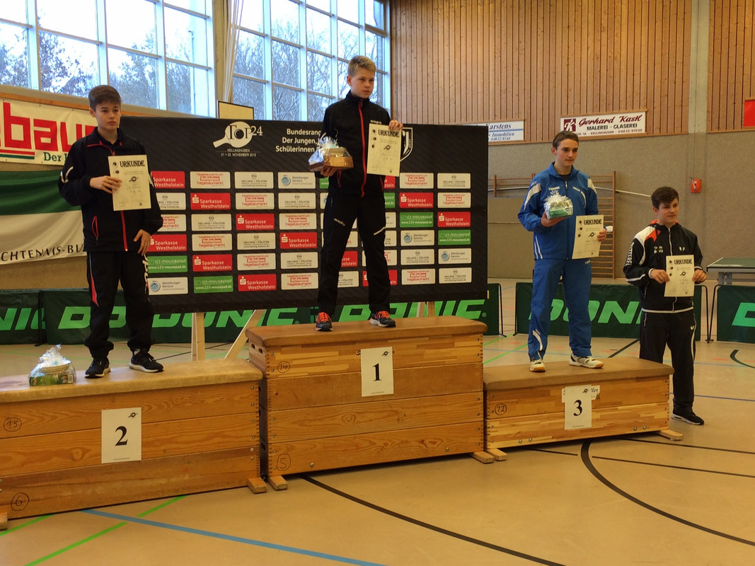 Im Bewerb der Schüler gelang es Daniel Rinderer (TV Ruhmansfelden) und Bastian Herbert (TV Etwashausen) sich ganz weit nach vorne zu spielen. Am Ende „zankten“ sie sich im kleinen Finale um den dritten Rang. Rinderer gewann in drei Sätzen und sicherte wie schon beim „Top 48“ die Bronzemedaille. Die weiteren BTTV-Platzierungen: 11. Hannes Hörmann (TV Hilpoltstein), 13. Jürgen Haider (TSV Schwabhausen), 15. Felix Wetzel (SB DJK Rosenheim) und 18. Mike Hollo (SV DJK Kolbermoor). Auch hier hoffen die BTTV-Trainer noch auf den einen oder anderen zusätzlichen Startplatz beim "Top 12".