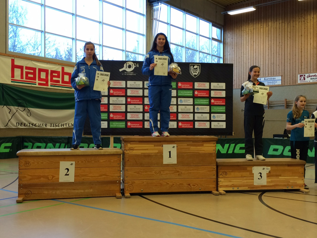 Applaus, Applaus! Ein Titelgewinn, insgesamt drei Podiumsplätze und sechs Top 8-Platzierungen, welche die direkte Qualifikation zum Top 12-Bundesranglistenturnier bedeuten - Bayerns Nachwuchsasse haben beim Top 24-Bundesranglistenturnier der Jugend (18) und Schüler (U15) im schleswig-holsteinischen Kellinghusen hervorragend abgeschnitten. Das gilt in besonderem Maße für die Konkurrenz der Schülerinnen, die mit einem bayerischen Doppelsieg endete und alle fünf BTTV-Starterinnen unter den Top 10 des Endklassements sah: In einem von beiden Seiten hochklassig gestalteten Endspiel setzte sich Gaia Monfardini (SV DJK Kolbermoor) knapp mit 3:2 gegen ihre Kolbermoorer Verbands- und Vereinskollegin Laura Tiefenbrunner durch. Außerdem lösten die beiden Hofstettenerinnen Franziska Schreiner (TV Hofstetten, 6.) und Lea Fath (TV Hofstetten, 7.) das Ticket zum „Top 12“. Sophia Deichert (RV Viktoria Wombach) belegte den 10. Rang und darf auf einen Nominierungsplatz hoffen.