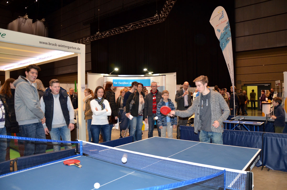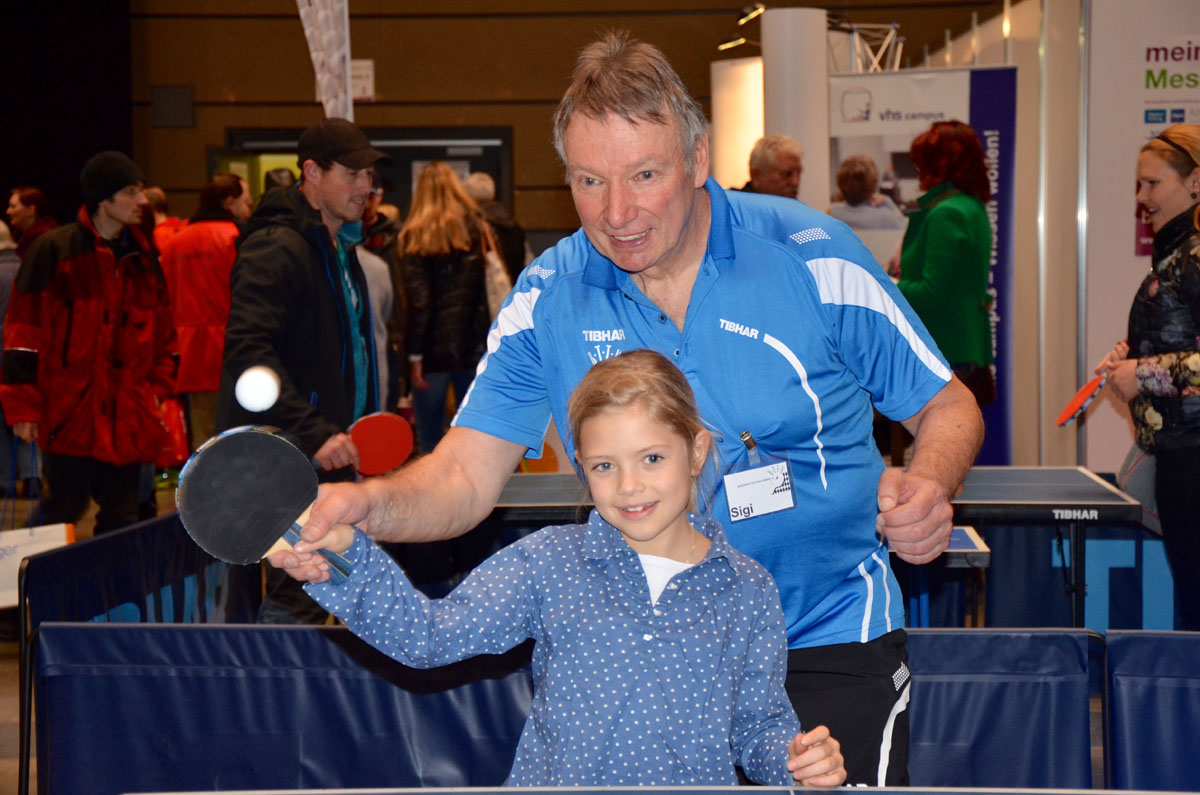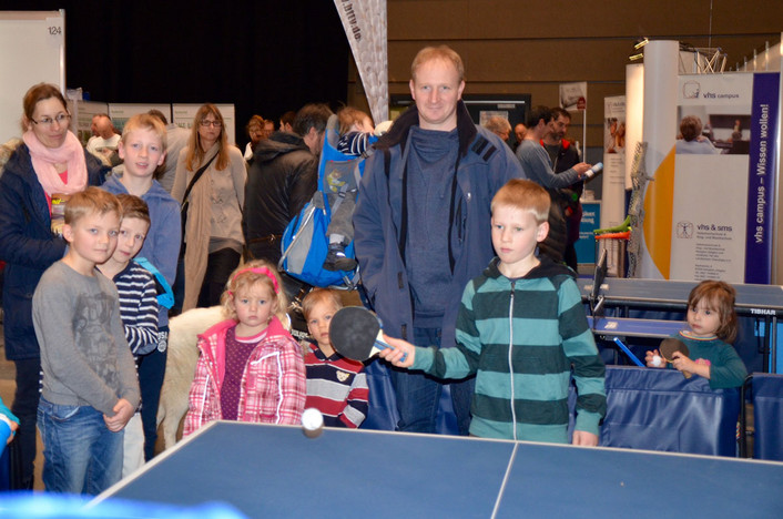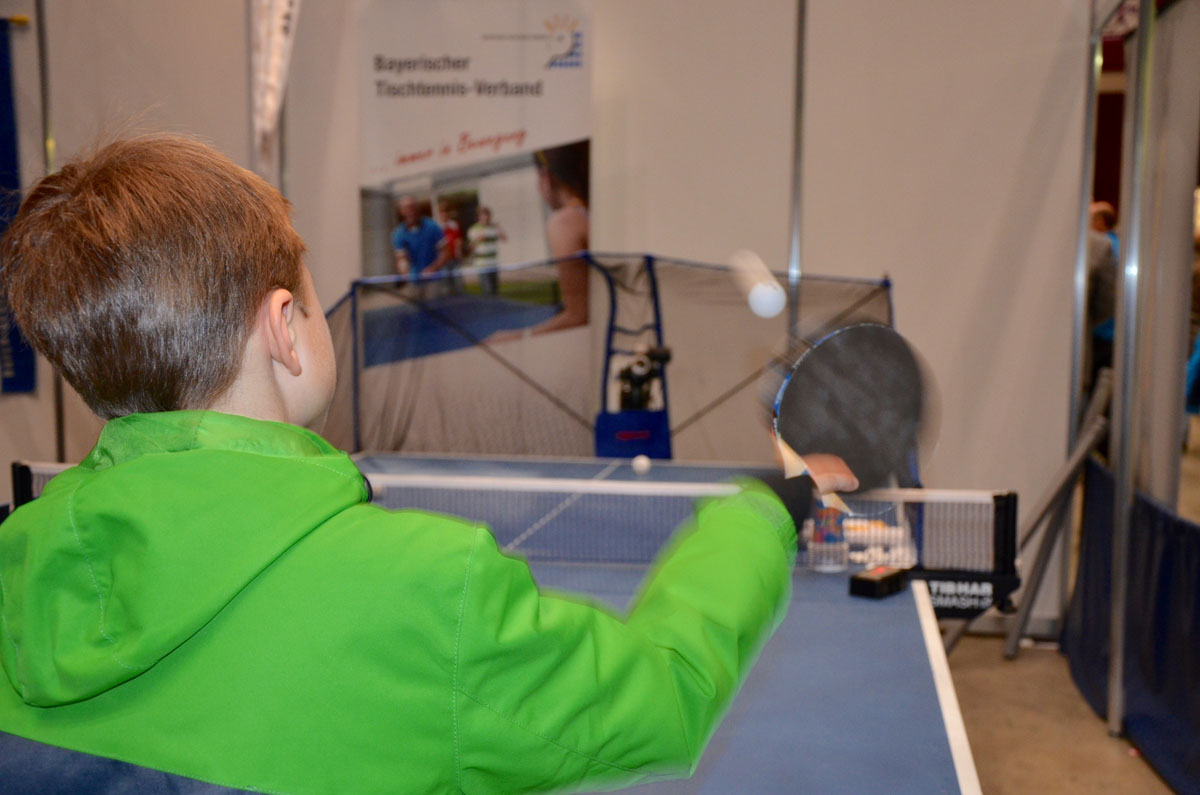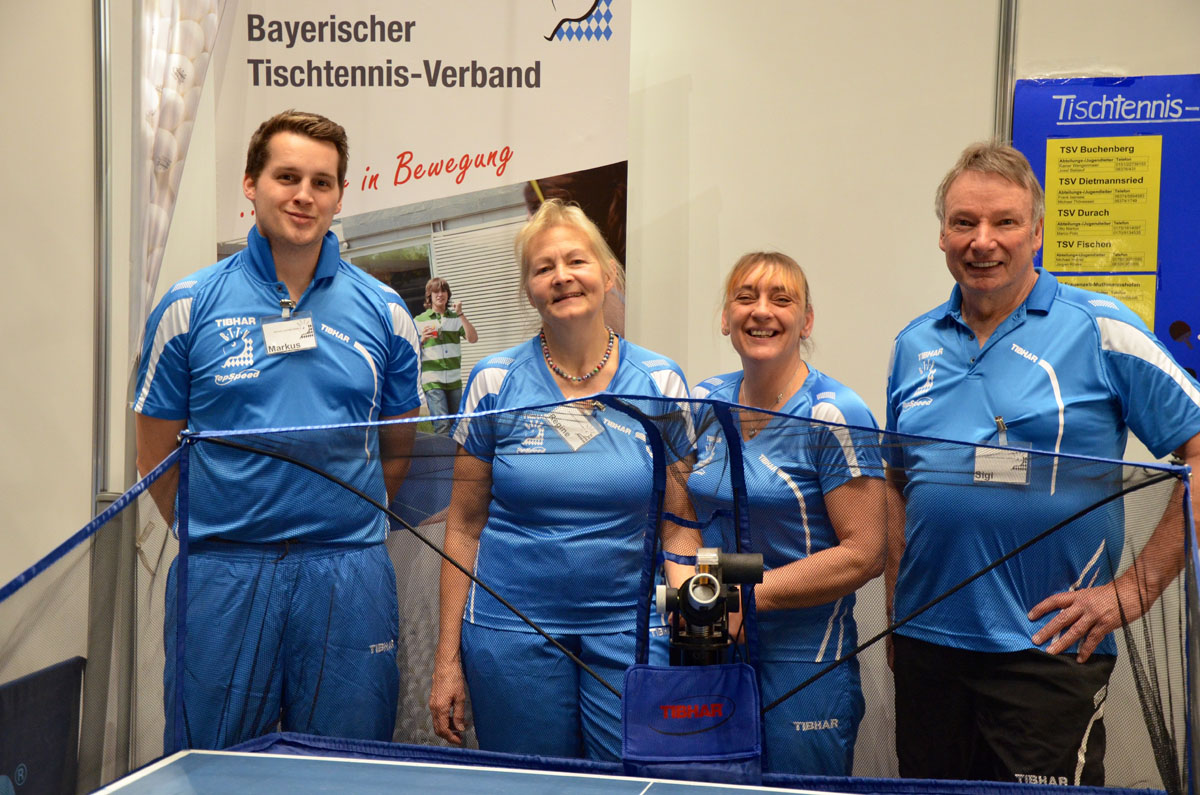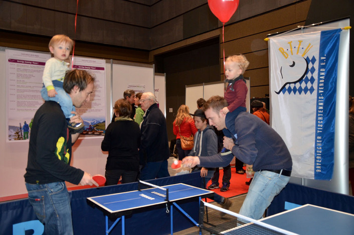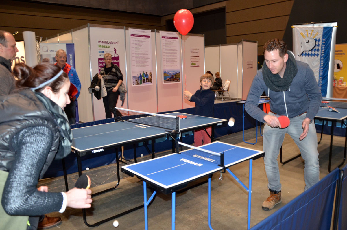 Berichte über die regelmäßigen Messe-Aufritte des BTTV zu verfassen, ist einerseits so simpel, erfordert andererseits aber auch etwas Kreativität, denn im Grunde gibt es immer und von überall das Gleiche zu berichten: Die gebotenen TT-Mitmach-Angebote kommen bei den Besuchern, den jungen ebenso wie den schon etwas älteren, einfach s**gut an; freie Tische sind Mangelware. Dass diese Sportart unter einem kontinuierlichen Mitgliederrückgang leidet: schwer vorstellbar. Nicht anders war das am vergangenen Wochenende auf der „meinLeben“ in Kempten, wo BTTV-Projektleiterin Petra Scherer als einzig kleinen Wermutstropfen einen „unerklärlichen Ballschwund“ zu beklagen hatte. Ansonsten, die Fotos liefern den Beweis, dominierte der Spaß am Hin und Her mit Schläger und Ball, wozu in hohem Maße auch die freiwilligen Helfer Markus Lemke (FC Scheuring), Sigi und Regine Holzknecht (TSV Durach), Gerd Haustein (TSV Sulzberg) sowie Heinz und Thann Ha Frerichs (FC Schwarz-Weiß Sonthofen) beitrugen. Danke dafür!