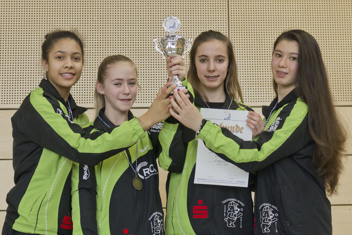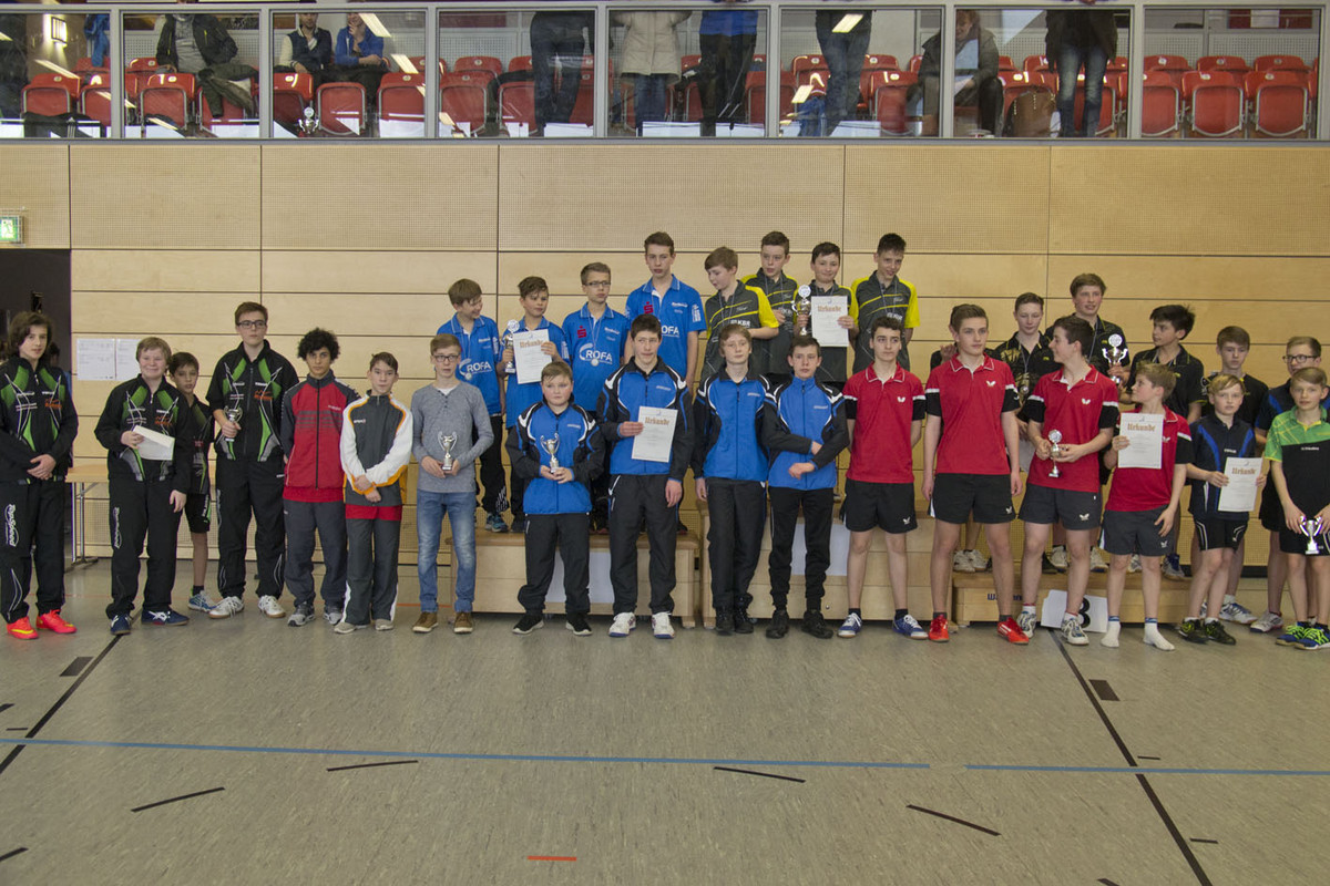 Überaus spannend verlief der Wettbewerb der Schüler A, in dem es von vornherein klar war, dass nur nur der TV Hilpoltstein und Titelverteidiger SV DJK Kolbermoor für den Sieg in Frage kämen. Nachdem beide Teams ihre vorausgegangenen Spiele klar gewonnen hatten, musste im direkten Vergleich die Entscheidung fallen. An dessen Ende hieß es 7:7-Unentschieden bei 27:25 Sätzen für Kolbermoor. In der Abschlusstabelle sah es dann aber so aus, dass Hilpoltstein bei 5:1 Punkten auf ein Spielverhältnis von 23:14 kam, während Kolbermoor bei 5:1 Punkten 23:18 Spiele vorzuweisen hatte. So konnte der TV Hilpoltstein den Siegerpokal in Empfang nehmen. Die Mittelfranken spielten in der Aufstellung Hannes Hörmann, Sebastian Hegenberger, Matthias Danzer und Vincent Distler. Auf Seiten des SV DJK Kolbermoor traten Mike Hollo, Yannick Dütsch, Daniel Hackenberg und Luis Kraus an.