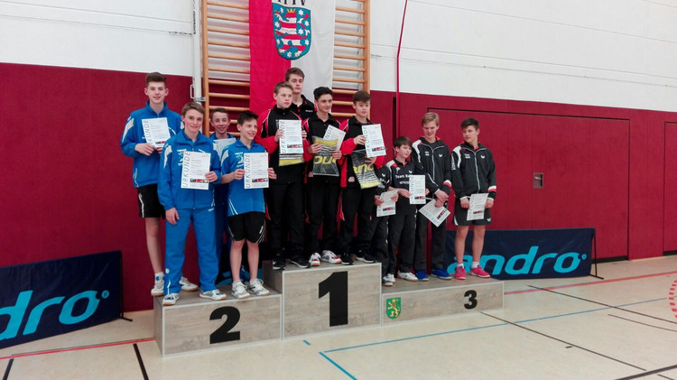 In der Besetzung Daniel Rinderer (TV Ruhmannsfelden), Bastian Herbert (TV Etwashausen), Hannes Hörmann (TV Hilpoltstein) und Jürgen Haider (TSV Schwabhausen) gelang es in Bad Blankenburg auch den BTTV-Schülern, in`s Endspiel einzuziehen. Nach einem famosen Start mussten sich die Schützlinge von Coach und Verbandstrainer Cornel Borsos dort aber dem an Position eins gesetzten Favoritenteam des Westdeutschen Tischtennis-Verbandes (WTTV) beugen. Mit Siegen über dessen Spitzenkräfte Krill Fadeev bzw. Tom Mykietyn hatten der Deutsche Vizemeister Daniel Rinderer und Bastian Herbert, der im gesamten Turnierverlauf ohne Niederlage blieb, für die 2:0-Führung gesorgt, doch weitere Siege sollten sich leider nicht einstellen.