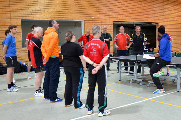 85 TT-Trainer aus dem ganzen Freistaat bevölkerten von Freitag bis gestern die Sportschule Oberhaching, um beim diesjährigen BTTV-Trainerkongress jede Menge Wissen und frische Motivation zu tanken, beinahe „by the way“ ihre Lizenzen zu verlängern und dabei auch noch jede Menge Spaß zu haben. Das Programm, das Chef-Organisator Michael Hagmüller (BTTV-Referent Vereinsservice) in wochenlanger Vorbereitung mit großer Akribie und viel Herzblut auf die Beine gestellt hatte, stieß bei den Teilnehmern inhaltlich wie organisatorisch einmal mehr auf helle Begeisterung: 17 kompetente Referenten boten 45 Workshops, Vorträge und Praxisseminare zu 27 unterschiedlichsten Themen (s. nebenstehenden Dateianhang), aus denen sich die Teilnehmer entlang ihrer Interessen und Bedürfnisse ein individuelles Paket schnüren konnten. So machte Lernen Laune! Dementsprechend positiv war die Stimmung an den drei Kongresstagen.