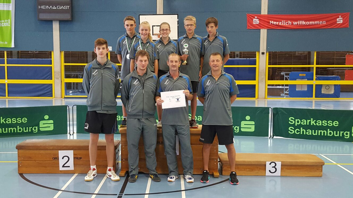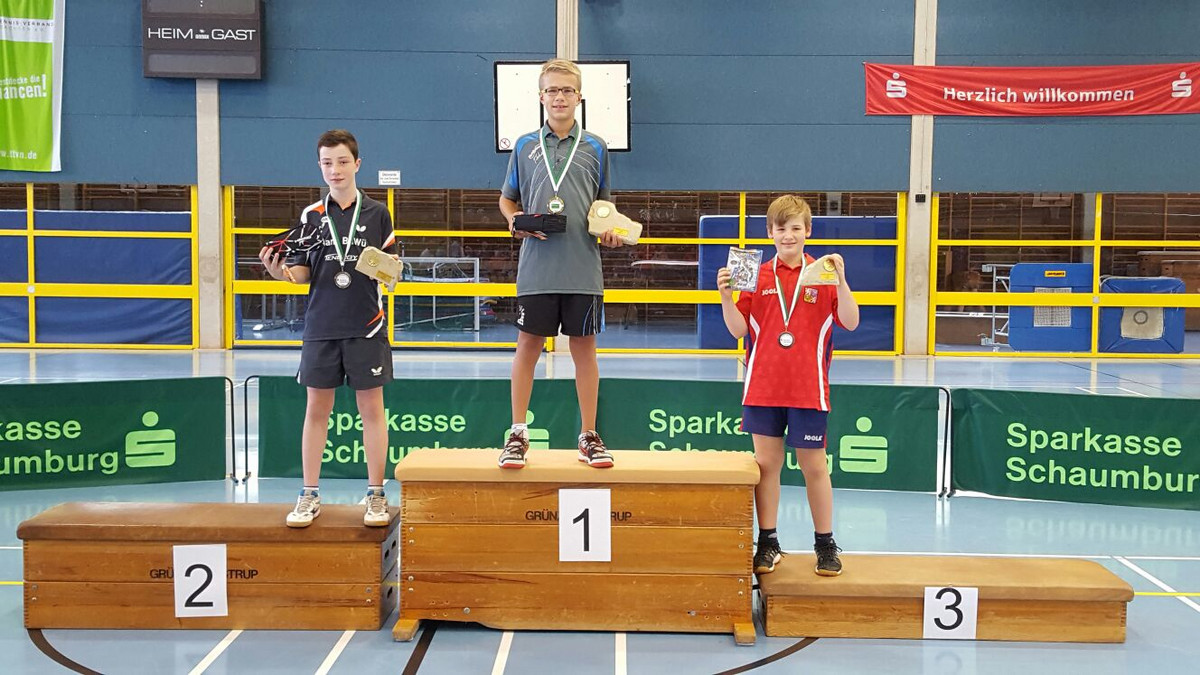 Sauber! Das Team Bayern hat den 30. Schüler-Grand-Prix des Tischtennis-Verbandes Niedersachsen (TTVN) in Rinteln dominiert. Bastian Herbert (TV Etwashausen), Mike Hollo (SV DJK Kolbermoor) und Sophia Deichert (RV Viktoria Wombach) sicherten der BTTV-Auswahl den Triumph in drei der vier ausgespielten Einzelkonkurrenzen, Daniel Rinderer (FC Bayern München) und Naomi Pranjkovic (SV DJK Kolbermoor) holten Silber und Hannes Hörmann (TV Hilpoltstein) den fünften Platz. Das bedeutete, verbunden mit 1.000 Euro Preisgeld, den deutlichen Gewinn der Teamwertung mit sagenhaften 342 Punkten vor Baden-Württemberg (223 Punkte) und Tschechien (212 Punkte). Verbandstrainer Cornel Borsos war mit seinen Schützlingen entsprechend zufrieden: „Auch wenn der Grand-Prix diesmal vor allem in der Breite sicher nicht ganz die Qualität vergangener Jahre hatte, war das schon eine feine Leistung unserer Spielerinnen und Spieler, zu der man ihnen nur gratulieren kann.“