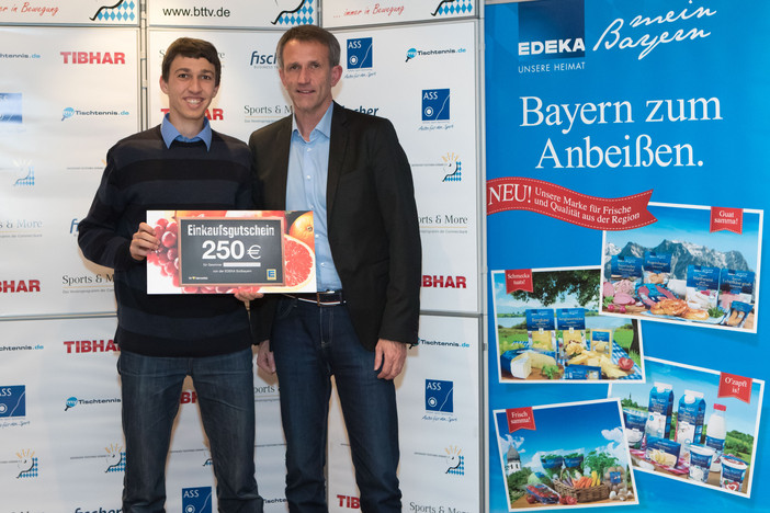 Gutschein über Einkäufe bei EDEKA Südbayern im Wert von 250 Euro gestiftet von EDEKA Südbayern - überreicht durch Bernhard Himmelstoß, EDEKA Südbayern