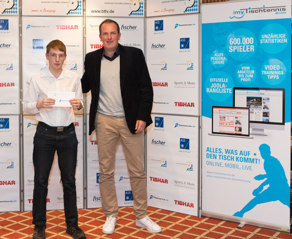 Gutschein von myTischtennis für einen myTT-Partner im Wert von 150 Euro - überreicht durch myTT-Geschäftsführer Jochen Lang