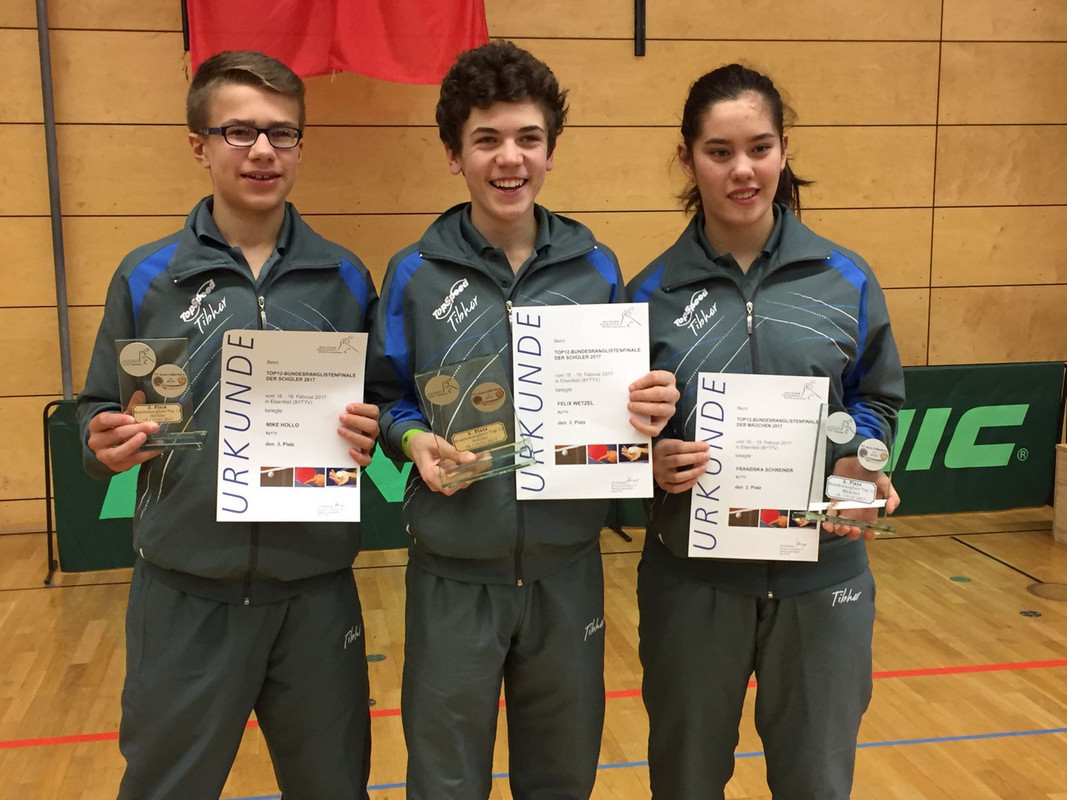 Der BTTV, mit neun Startern beim „Heim-Top-12“ vertreten, landete mit zweimal Silber und einmal Bronze auf dem dritten Platz im „Medaillenspiegel“. Franziska Schreiner (TV Hofstetten, 2. Platz Mädchen U18), Felix Wetzel (SB DJK Rosenheim, 2. Platz Schüler U15) und Mike Hollo (SV DJK Kolbermoor, 3. Platz Schüler U15) avancierten mit famosen Auftritten zu den weißblauen „Turnierhelden“ und ließen Verbandstrainerin Krisztina Toth ein äußerst positives Fazit ziehen: „Die drei Medaillen haben unsere Erwartungen übertroffen, wir sind richtig glücklich. Ein Sonderlob geht natürlich an Franzi, Felix und Mike, die über beide Tage hervorragende Leistungen abgerufen und eine sehr professionelle Einstellung gezeigt haben. Die Ergebnisse sind erfreulich, speziell auch im Hinblick auf die Jugend-EM. Die anderen Spieler haben nicht enttäuscht, es fehlte z.T. aber etwas die Konstanz, die bei so einem Turnier natürlich wichtig ist. Bei Daniel Rinderer, der als Top 48-Sieger sicher zum Favoritenkreis bei den Schülern gezählt hatte und Fünfter wurde, mangelt es momentan an Selbstvertrauen. Er macht sich viel Druck, hat aber immer weiter gekämpft.“