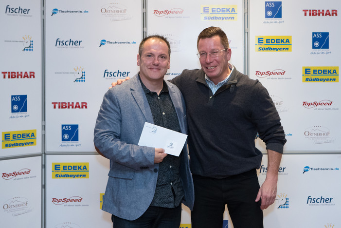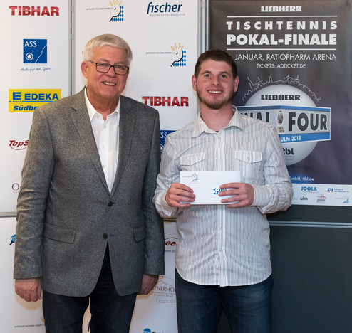 2 VIP-Tickets für das Final Four am 6. Januar in Neu-Ulm inklusive 100 Euro Fahrtkostenzuschuss, gestiftet von der TTBL Sport GmbH und dem BTTV (Fahrtkostenzuschuss) - Stellvertr. überreicht durch BTTV-Präsident Konrad Grillmeyer