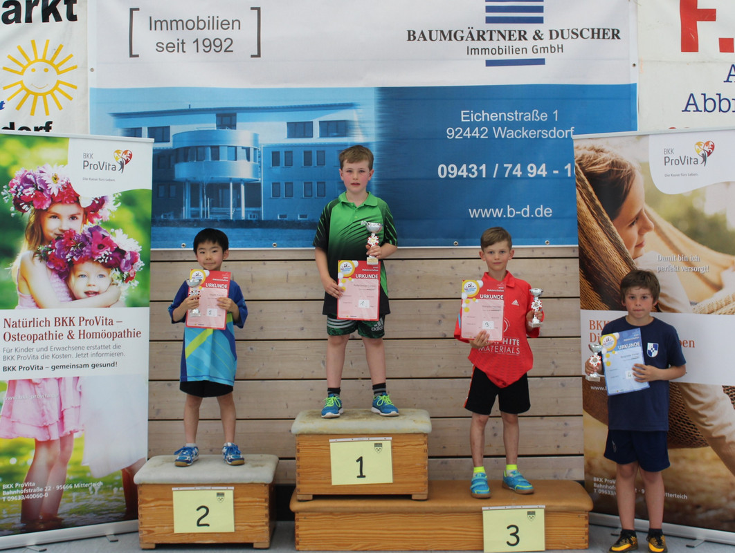 Unsere bayerischen Vertreter beim diesjährigen Bundesentscheid der mini-Meisterschaften, der von 8. bis 10. Juni in Trier stattfindet, kommen aus Furth in Mittelfranken und Bad Königshofen in Unterfranken: Bei den Jungen sicherte sich Lorenz Rettenberger das begehrte Ticket, bei den Mädchen schaffte es Koharu Itagaki zum deutschen Finale. Die beiden TT-Kücken gewannen beim Verbandsentscheid in Wackersdorf zunächst den Titel in der jüngsten Altersklasse III (Jahrgang 2009 und jünger). In den anschließenden Entscheidungsspielen um die Bundesentscheid-Teilnahme gelang ihnen dann das seltene Kunststück eines Erfolgs über die Meister der älteren AK II (2007/2008), Ben Lindner (Nürnberg) bzw. Hannah Jaeger (Riezlern). Bei den ältesten Teilnehmern der AK I (2005/2006) ging der bayerische mini-Meistertitel an den Münchner Daniel Hussain und die Kleinwalsertalerin Maria Ritsch aus Riezlern.