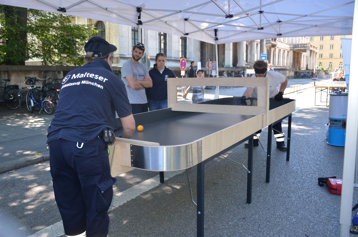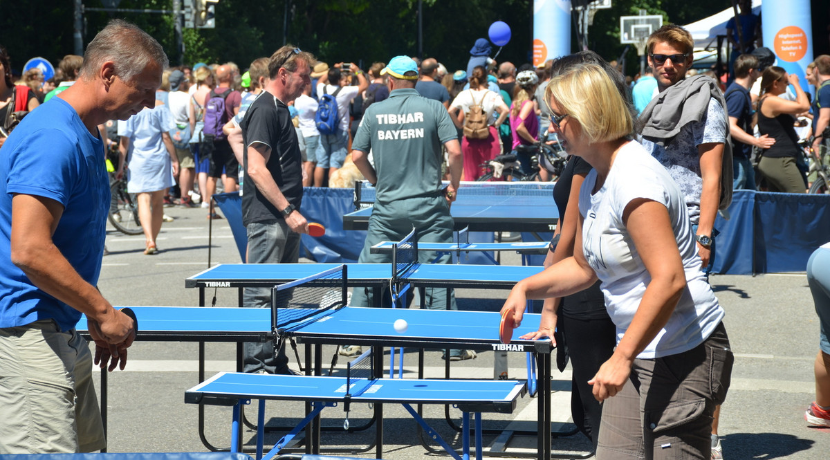 Toller Tag beim M-net Münchner Sportfestival! Hunderte Menschen kamen am Sonntag mit über 90 Sportarten und natürlich mit Tischtennis in Berührung und hatten am Roboter, kleinen und großen Tischen sowie auf zusammengestellten Biertischen jede Menge Spaß. Beim Inklusiven Biertisch-Tischtennis-Turnier gewann Paralympicsteilnehmerin Lena Kramm. Erstmals hatte der BTTV um Mitarbeiterin Petra Scherer und ihr Helferteam mit dem Bayerischen Behinderten- und Rehabilitations-Sportverband Bayern (BVS) einen gemeinsamen Stand bei der neunten Auflage des Festivals initiiert. Der BVS Bayern präsentierte unter anderem "Showdown", ein Tischtennis-ähnliches Spiel für sehbehinderte Menschen.