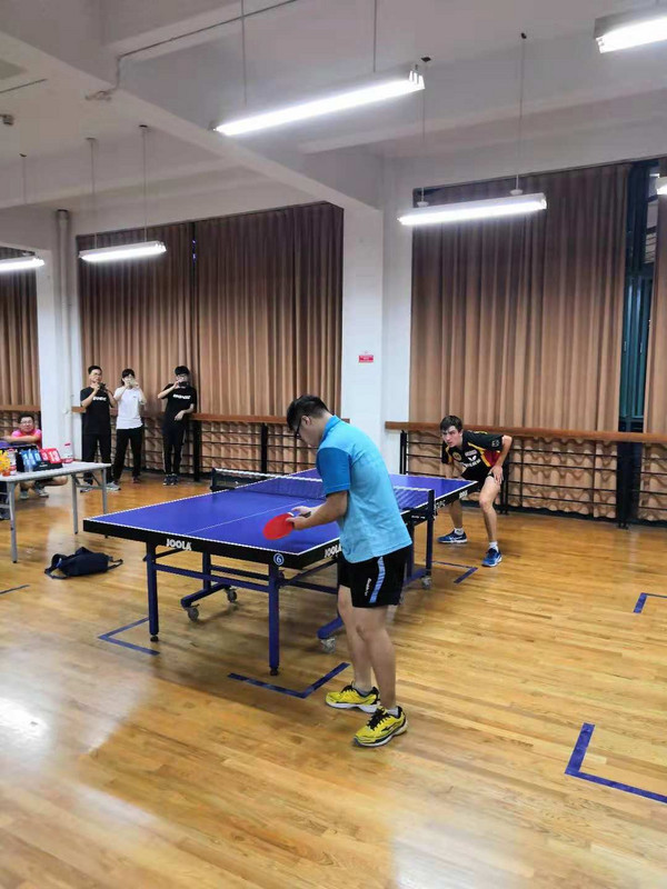 Bei meiner Turnier-Premiere kamen Spieler von allen Universitäten Ningbos zusammen. Gegen den laut Erzählungen besten Spieler der Universitäten aus Ningbo konnte ich im Finale knapp gewinnen. Der ist normalerweise besser als ich, da bin ich relativ sicher. Ehrlich gesagt, ich habe keine Ahnung, warum ich gegen ihn gewonnen habe. Glücklicherweise haben wir als Uni-Mannschaft das Turnier gewonnen und sind sozusagen der beste Tischtennis Club von den Ningbo-Universitäten. Im Laufe des Turniers konnte man in den Wettbewerben Einzel, Doppel, Mixed und Team für seine Uni Punkte sammeln. Die Uni, die zusammengenommen die meisten Punkte holt, hat am Ende gewonnen. Mein Einzelerfolg hat sehr viele Punkte gebracht, sodass wir letztendlich Gesamtsieger wurden.