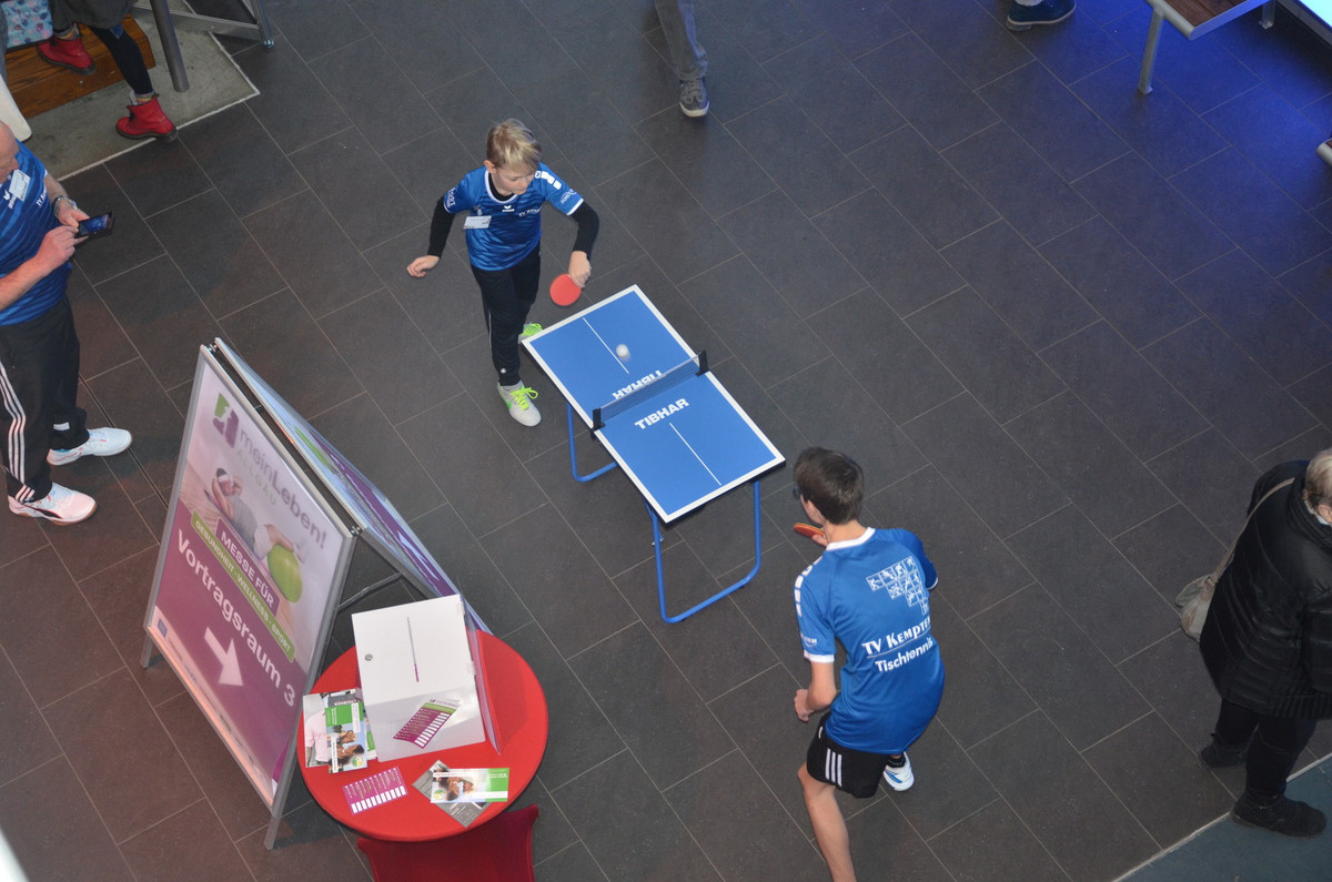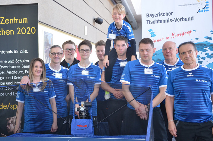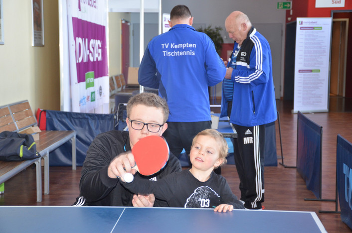 Drei Tage volles Programm und mehrere tausend Besucher auf der Messe "MeinLeben" in Kempten; mittendrin zum sechsten Mal in Folge: Der BTTV mit Tischtennis. Auf der Aktionsfläche wurden die großen und kleinen Besucher vom Spiel mit dem weißen Ball begeistert, sie konnten auf großen und kleinen Platten das eigene Ballgefühl testen und ein "Match" gegen den Roboter bestreiten. Wie immer fachlich kompetent angeleitet und betreut durch BTTV-Mitarbeiterin Petra Scherer und ihrem Team. Letzteres setzte sich aus drei Vereinen zusammen, dem TSV Sulzberg um Toni Schütz und Alina Beutmüller, dem TSV Durach um Regine und Sigi Holzknecht sowie aus dem TV Kempten mit einer großen Mannschaft um Abteilungsleiter Michael Reisacher. Mittendrin im Geschehen war auch Tim Reininger, Bezirksjugendwart und Fachwart Breitensport im Bezirk Schwaben-Süd. So konnte der direkte Kontakt zu weitergehend interessierten Kindern und Jugendlichen aufgebaut werden.
