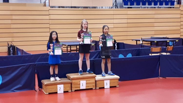 Ganz stark! Unser Team Bayern hat sich am Wochenende beim DTTB Talent Cup im Deutschen Tischtennis-Zentrum in Düsseldorf prächtig präsentiert. Sahnehäubchen: Der Turniersieg von Theresa Faltermaier (TSV Erding) in der älteren Konkurrenz der 2008er Mädchen und der Silberrang von Koharu Itataki (TSV Bad Königshofen) bei den Mädchen 2009 und jünger. Mit einer glänzenden Leistung bezwang Faltermaier im Finale die niedersächsische TTR-Jahrgangsbeste und Turnierfavoritin Faustyna Stefanska 3:1. Itataki, geboren anno 2010, musste sich im Endspiel der übermächtigen Josephina Neumann erwartungsgemäß in drei Sätzen geschlagen geben. Ebenfalls Jahrgang 2010 verfügt die Hessin aktuell bereits über einen TTR-Wert von 1568 (!) Punkten.