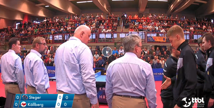 Das war trotz 1:3-Niederlage und kleiner Wermutstropfen mit Sicherheit eines der bislang denkwürdigsten Matches in der Geschichte des TSV Bad Königshofen und auch in puncto Vermarktung tolle Werbung für die TTBL und den Tischtennissport: Der Deutsche Rekordmeister Borussia Düsseldorf war erstmals MIT seinem Superstar Timo Boll in „KÖN“ zu Gast, die Shakehands-Arena mit knapp 900 Zuschauern (nahezu) ausverkauft und die Stimmung sensationell. Nur schade, dass die unterfränkischen Gastgeber nolens volens ausgerechnet an diesem Tag auf gleich zwei ihrer Stammkräfte verzichten mussten: Japan-„Flo“ Mizuki Oikawa wurde zu einem Qualifikationsturnier in sein Heimatland „zitiert“, Eigengewächs Kilian Ort laboriert weiterhin an einer Leistenverletzung. Umso mehr tobte die Halle, als TSV-Frontmann Bastian Steger durch ein attraktiv und aggressiv herausgespieltes 3:1 über den Schweden Anton Källberg für die 1:0-Führung der Hausherren sorgte. Es sollte jedoch der Ehrentreffer für die Hausherren bleiben. Im zweiten Match konnte einem die japanische TSV-Ersatzkraft Koudai Hiraya beinahe leid tun: Obwohl sich der Defensivstratege nach Kräften wehrte, Abwehr-Killer Boll spielte „Katz und Maus“ mit ihm, gewann den ersten Satz gar 11:0 und glich mit 3:0 zum 1:1 aus. Weitaus enger ging es nach der Pause zwischen dem kroatischen „Erst-Ersatz“ Filip Zeljko und DTTB-Nationalspieler Ricardo Walther zu, doch in fünf Durchgängen hatten auch hier die Gäste das bessere Ende für sich. „Man of the Match“ war aber eindeutig Timo Boll, der nach verlorenem ersten Satz auch sein zweites Solo „Eins gegen Eins“ gegen Bastian Sieger gewann und damit den 3:1 Endstand für Düsseldorf herstellte.