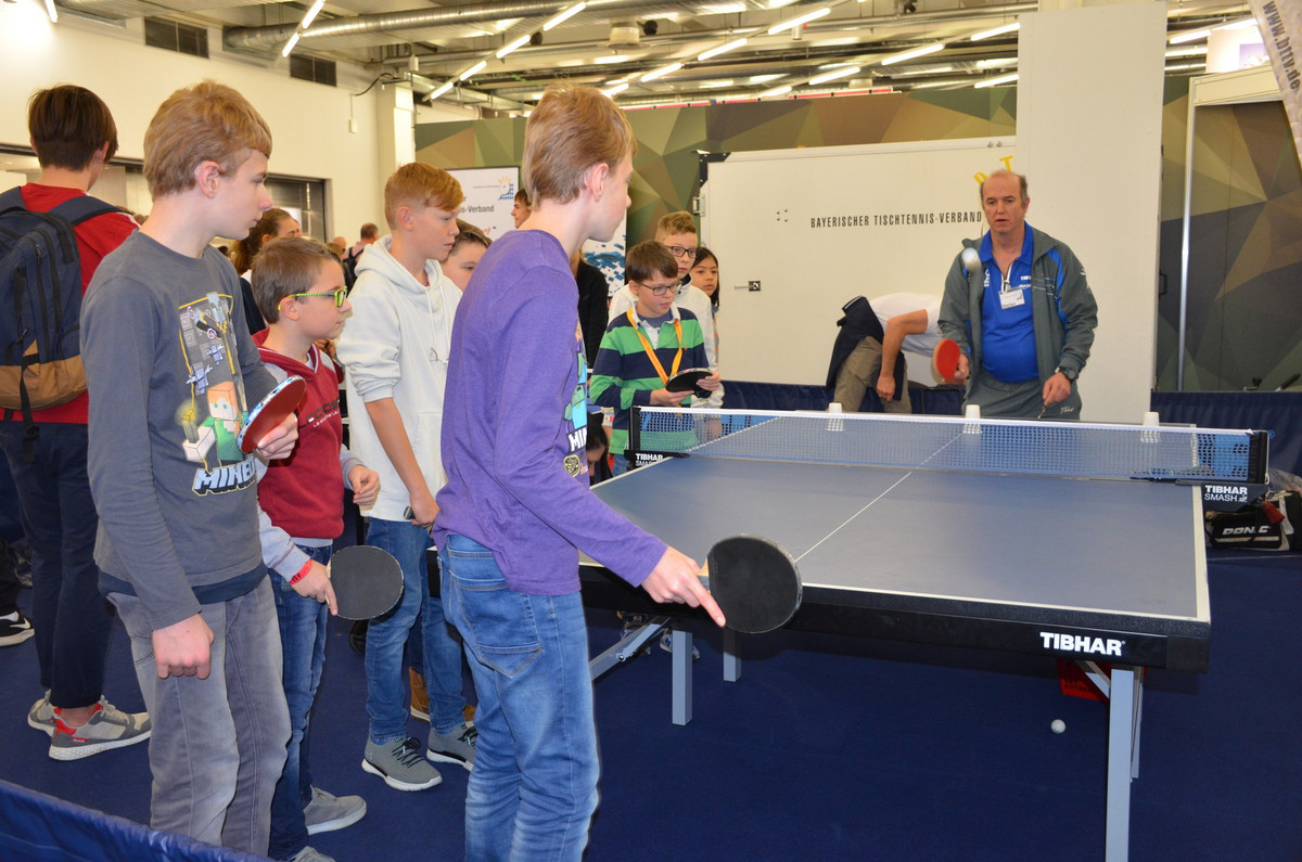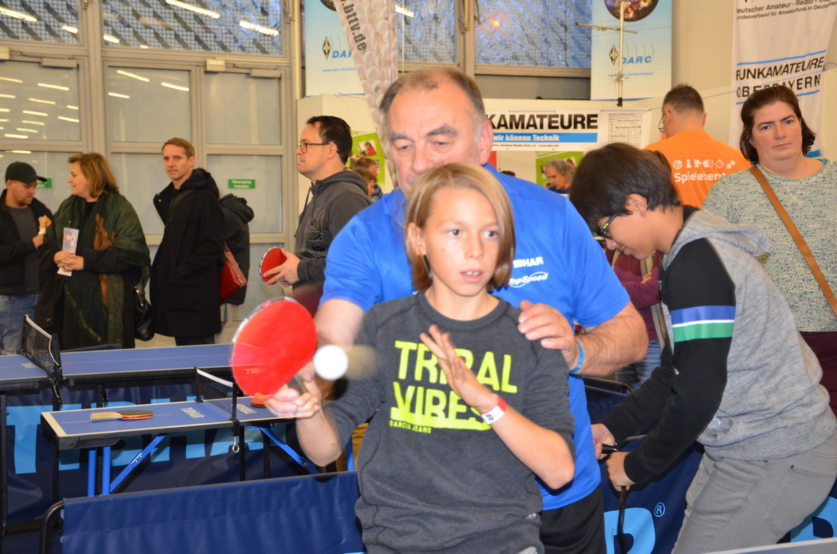 Von Freitag bis Sonntag war ein größeres BTTV-Team auf der Mitmachmesse FORSCHA im MOC München zu Gast und gab den großen und kleinen Besuchern Einblicke in den Tischtennissport. In Halle 1 hatte der BTTV den Ballroboter sowie weitere Tische unterschiedlicher Größen bereitgestellt. Wie schon im vergangenen Jahr war der Andrang enorm, vor allem am Freitag, als zahlreiche Schulklassen die FORSCHA besuchten. Die BTTV-Mannschaft zeigte Techniken, organisierte kleinere Wettkampfspiele und war trotz der langen Tage stets bester Laune. Neben Tischtennis konnten die Besucher nach Lust und Laune experimentieren, programmieren, tüfteln und entwickeln.