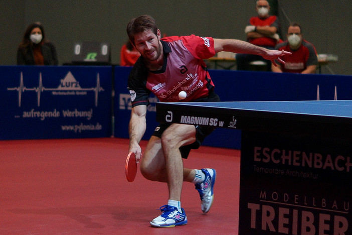 Für den TSV Bad Königshofen gab`s zum Abschluss der Vorrunde den vierten Saisonsieg in Folge: Mit 3:1 setzten sich die Unterfranken in eigener Halle gegen den amtierenden Deutschen Meister 1. FC Saarbrücken-TT durch und hielten - nunmehr punktgleich hinter den Bezwungenen - den sechsten Tabellenplatz. Dabei spielte das „Timing“ der Begegnung den Gastgebern fraglos in die Karten: Dass die Saarbrücker unmittelbar nach der achttägigen Champions League-Blase, die für sie erst am späten Freitagabend mit einer 1:3-Finalniederlage gegen Gastgeber Düsseldorf zum Platzen kam, körperlich und mental doch einigermaßen ausgelaugt waren, war trotz bestem Bemühen ebenso merklich wie verständlich. Die Eigenleistung der Bad Königshöfer soll dies aber keinesfalls schmälern. In gezeigter Verfassung hätten wohl auch taufrische Saarländer ihre liebe Müh und Not mit Bastian Steger und Co. gehabt. Höchstselbst setzte genannter TSV-Leitwolf mit Siegen über Shang Kun (3:1) und Tomas Polansky (3:0) Anfangs- und Schlusspunkt. Dazwischen war es der abermals bärenstarke Kroate Filip Zeljko, der vis-à-vis Tomas Polansky in drei Sätzen für die 2:0-Führung sorgte, während Kilian Ort gegen den Weltranglisten-16. Patrick Franziska seine Chance verpasste. Beim 1:3 brachte Ort im vierten Durchgang eine 10:4-Führung nicht ins Ziel.
