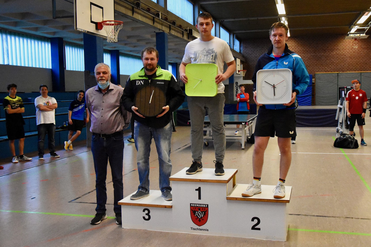Mit dem nachgeholten Finale in Neumarkt ist die Saison des Bavarian TT-Race 2020 am Montagmittag offiziell zu Ende gegangen. Wegen der Pandemie war das Finale aus dem vergangenen Jahr auf Allerheiligen 2021 verschoben worden. Die Tischtennis-Abteilung des ASV Neumarkt sprang kurzfristig als Ausrichter ein und machte die Sache einwandfrei, sorgte für Getränke und Semmeln und stiftete für die drei Erstplatzierten sogar Wanduhren als Sachpreise.