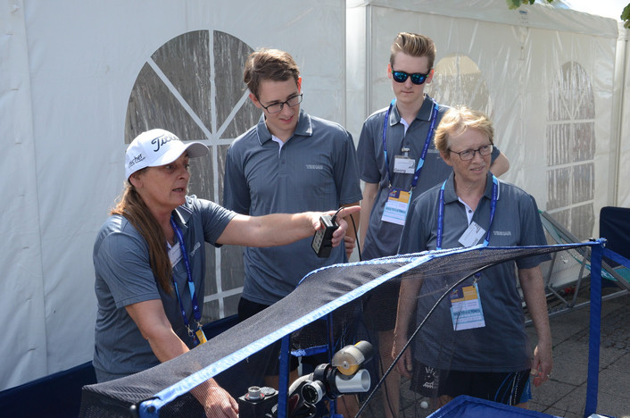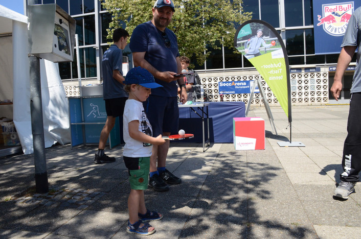 „Ich habe lange nicht mehr gespielt, das ist schon 20 Jahre her“, verteidigt sich eine Frau, die nicht jeden Ball trifft. Als ihr die Volunteers Tipps geben, läuft es gleich besser. „Wow, danke!“ Doch kaum wurde ein Ball getroffen, fliegt der nächste an ihr vorbei. „Warum schaffe ich das nicht“, so ihr fragender Blick in die Runde, während ihr Sohn Bälle einsammelt.