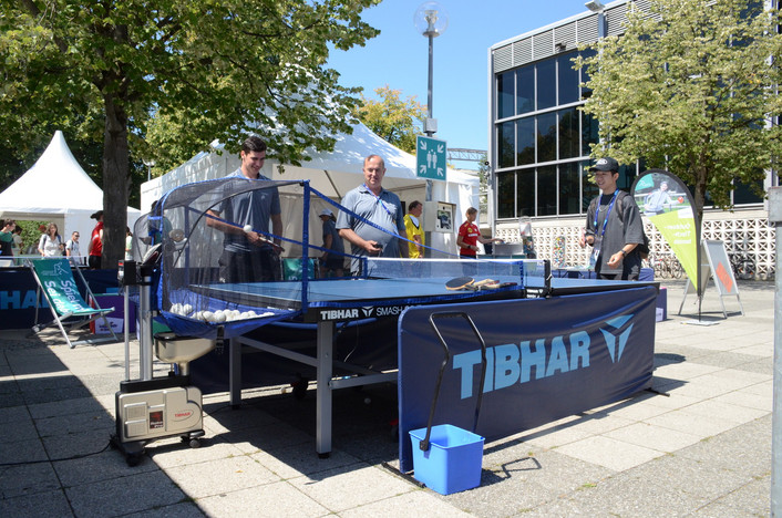 Die European Championships sind eröffnet und der BTTV hat gemeinsam mit dem DTTB einen Stand (täglich 11 bis 19 Uhr) direkt beim Olympia-Eissportzentrum. Dort stehen sieben Wettkampf-, sechs midi- und zwei mini-Tische, um zwanglos eine Runde Tischtennis spielen zu können. Insbesondere der Tischtennis-Roboter erfreut sich großer Beliebtheit, hier bildete sich immer wieder eine Warteschlange.