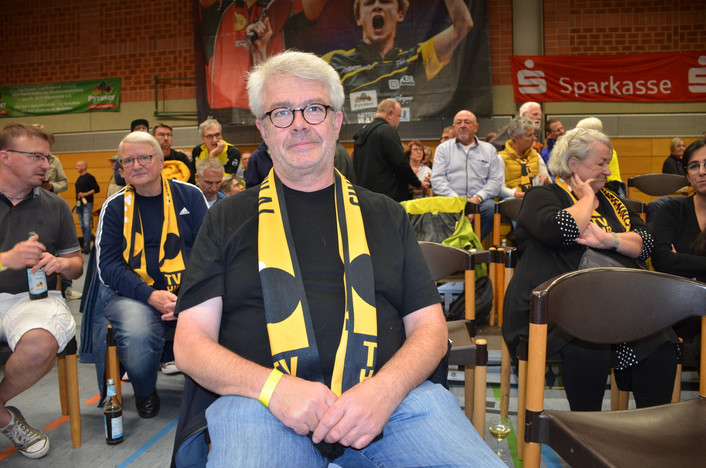 Viele Kilometer: Andreas Neste ist seit einigen Jahren Fan des TV Hilpoltstein. Er wohnt in Castrop-Rauxel (rund 50 Kilometer von Düsseldorf) und reist zu jedem Spiel – egal ob heim oder auswärts. Normalerweise ist seine Frau auch dabei, doch gestern war sie beruflich in New York. Deswegen holt er sie heute vom Frankfurter Flughafen ab und am Sonntag gegen Bad Homburg, wenn es um Zweitligapunkte geht, sind beide wieder in der Halle. Übernachtet hat Neste übrigens im gleichen Hotel wie die Düsseldorfer. „Ich habe Timo Boll schon zig mal spielen sehen. Es war für mich eine besondere Freude, ihn hier in Hilpoltstein zu erleben“, sagte Neste.