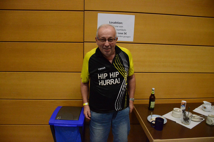 Viele Gewinne: An eben jenem Stand wurde eine Tombola durchgeführt. 18 Preise gab es zu gewinnen. Der Hauptpreis war ein Original-Trikot von Borussia Düsseldorf. In der Pause zwischen dem zweiten und dritten Duell spielte Düsseldorfs Kay Stumper, vergangene Saison noch in Diensten des TTC Neu-Ulm, Glücksfee und zog den Hauptgewinner.