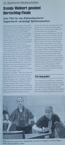 Übrigens: Mit Andreas Weikert war sie 2001 im Mixed auch schon erfolgreich, im Einzel war sie von 2004 bis 2007 das Maß aller Dinge bei den Bayerischen Meisterschaften, ehe der Stern einer gewissen Sabine Winter ab 2008 aufging…