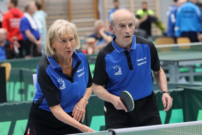 Wenn das mal kein vorgezogenes Geburtstagsgeschenk ist: Zwei Monate vor ihrem 80. Geburtstag war Rosi Berg vom TSV Oberstdorf die herausragende BTTV-Spielerin bei den Deutschen Meisterschaften der Senioren am vergangenen Wochenende in Ahrensburg. Nach Bronze im Mixed am Sonntag gab es am Finaltag als Sahnehäubchen noch Gold im Einzel und Bronze im Doppel obendrauf.