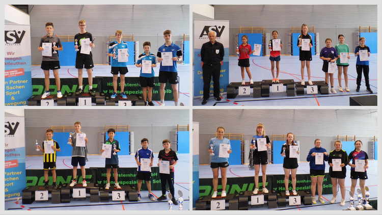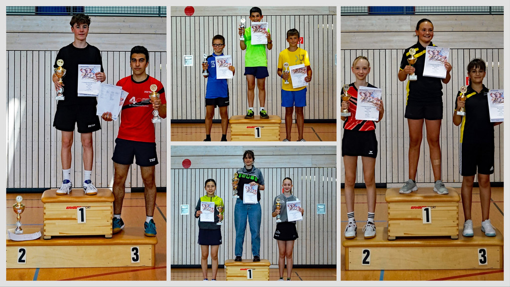 - Jungen 13: 1. Skutta, Nick (TSV Wassertrüdingen), 2. Haas, Willy (TTC Kist) 3. Straub, Lian (SC 1900 Schweinfurt e.V.)