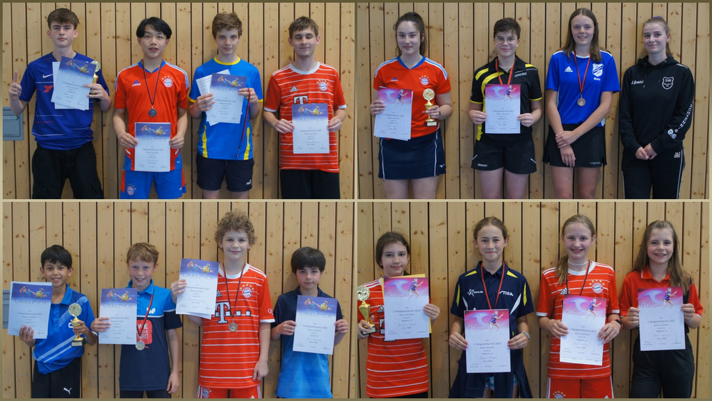 - Jungen 13: 1. Schreindorfer, Leopold (TTC Straubing), 2. Steininger, Simon (MTV 1862 Pfaffenhofen/llm), 3. Gutsmiedl, Julius (TSV Taufkirchen)
