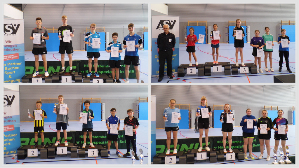- Mädchen 13: 1. Quan, Lia (TV Konradsreuth), 2. Ehrlicher, Rosalie (TSV 1860 Bad Rodach), 3. Erhardt, Marlene (TTC Geutenreuth)