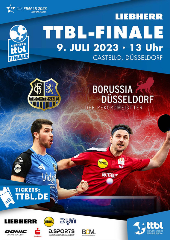 Die Saison in der TTBL strebt ihrem Höhepunkt entgegen. Am 9. Juli entscheidet sich im Liebherr TTBL-Finale, wer Deutscher Mannschaftsmeister 2023 wird: Der 1. FC Saarbrücken TT mit Topstar Patrick Franziska hat sich in der aktuellen Saison bereits die Champions League-Krone aufgesetzt und in einem hochspannenden Spiel Borussia Düsseldorf bezwungen. Und der Rekordmeister um Superstar Timo Boll ist auch im Liebherr TTBL-Finale wieder Gegner der Saarländer. Schafft der 1. FC Saarbrücken TT das Double oder krönt sich der Lokalmatador und Titelverteidiger Borussia Düsseldorf zum Deutschen Meister? Da das Liebherr TTBL-Finale in diesem Jahr in das Multisportevent "Die Finals Rhein Ruhr" eingebettet ist, wird im Castello in Düsseldorf gespielt. Spielbeginn ist um 13 Uhr.