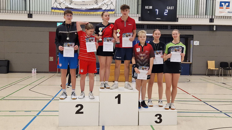 „Alles-Abräumer“ gab es in Dillingen zwei: Anna Walter (MTV Ingolstadt) und Jonas Rinderer (TV Ruhmannsfelden) holten bei der Jugend 15 jeweils drei von drei möglichen Titeln: Zusammen im Mixed, im Doppel mit und im Einzel-Endspiel gegen Zoe-Loreen Sommer (TSV Oberstdorf) bzw. Zwillingsbruder Fabian. Das Duell Rinderer versus Rinderer gab es auch 2022 im Finale, damals allerdings noch bei den Jungen 13.