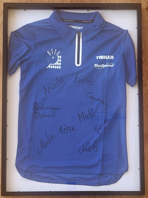 Nun, bei der gestrigen Weihnachtsfeier der Geschäftsstelle, nahmen BTTV-Präsidium und Geschäftsstellenmitarbeiter Abschied von Borsos, der über 17 Jahre für unseren Verband aktiv war. Bescheiden wie denn und je, bedankte sich Borsos zunächst bei jedem Mitarbeiter für die gute Zusammenarbeit mit einer kleinen Aufmerksamkeit, ehe er reichlich beschenkt wurde. Neben einer Bildercollage gab es auch noch ein eingerahmtes Trikot mit den Unterschriften aller Geschäftsstellenmitarbeiter. Obendrauf legten diese ihm auch noch einen Einkaufsgutschein.