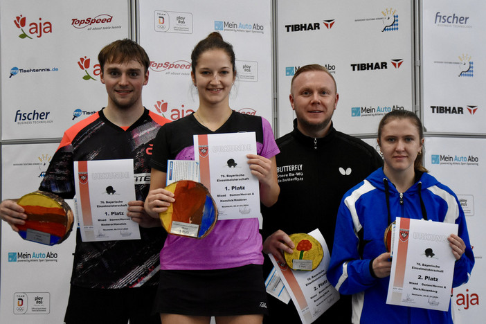 Im Herren-Doppel war Daniel Rinderer mit seinem jüngeren Bruder Jonas (TV Ruhmannsfelden) gegen das Drittliga-Duo Hannes Hörmann/Marius Zaus (beide DJK SpVgg Effeltrich) 3:2 (12:10, 7:11, 9:11, 11:8, 11:7) erfolgreich. Tags zuvor hatte Daniel Rinderer schon zusammen mit Janine Hanslick (TuS Fürstenfeldbruck) den Mixed-Wettbewerb gewonnen. „Das Triple kam sehr überraschend für mich, ich konnte bisher noch nie mehr als eine Konkurrenz gewinnen“, war der 21-Jährige Passauer selbst ganz baff. „Einfach sensationell, was ich in diesen zwei Tagen gespielt habe. Ich bin megastolz und sehr zufrieden mit meiner Performance.“ 2020 hatte er im Einzel-Finale gegen Daniel Weber (SpVgg Thalkirchen) gewonnen, 2022 mit seinem damaligen Mitspieler Petros Sampakidis (FC Bayern München) den Doppel-Wettbewerb für sich entschieden und 2017 ebenfalls mit Hanslick im Mixed triumphiert.