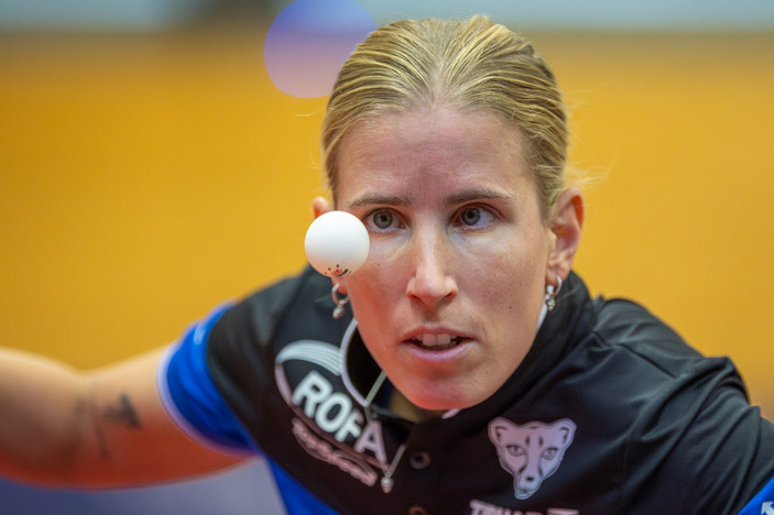 Optimal lief es parallel dagegen für ihre Teamkolleginnen beim Punktspiel in der heuer so ungemein ausgeglichenen 1. Damen-Bundesliga: Mit einem 6:1-Erfolg bei der TTG Bingen/Münster-Sarmsheim sammelten die Oberbayerinnen zwei wichtige Zähler gegen den einen Abstiegsplatz und für die Playoff-Qualifikation. Was sich deutlich anhört, war in Wirklichkeit allerdings eine ziemlich enge Kiste. Nach einer 1:0-Führung des Gastgebers durch das Doppel Lea Rakovac/Karolina Mynarova (3:1 gg. Dina Meshref/Hana Arapovic) gingen vier Begegnungen über die volle Distanz von fünf Sätzen und alle vier endeten zu Gunsten von Kolbermoor. Ein gelungnes Teamdebüt feierte Winter-Neuzgang Dina Meshref. Die ägyptische Nationalspielerin, die es gerade noch rechtzeitig vom WTT Star Contender in Doha nach Bingen schaffte, steuerte zwei Einzelsiege (3:2 gg. Elena Kuzmina, 3:1 gg. Rakovac) zum Teamerfolg bei. Die weiteren Treffer markierten das Doppel Kristin Lang/Svetlana Ganina sowie im Einzel Lang, Ganina und Arapovic.