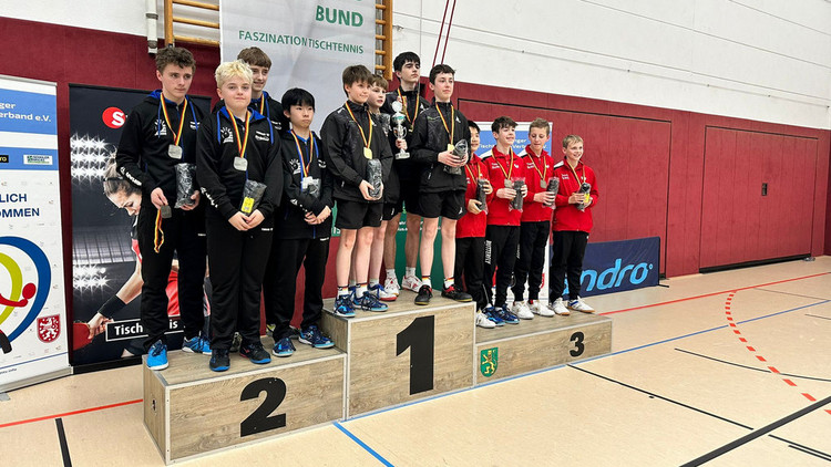 Gleiches gilt für den zweiten Platz der Jungen 13, die zumal kurzfristig ohne den verletzten bayerischen Meister der Jugend 13, Lenny Zuber auskommen mussten. Für ihn rückte Jungen 11-Meister Felix Heidemann ins Aufgebot und machte seine Sache u.a. mit einem überraschenden Einzelsieg im Halbfinale gegen Baden-Württemberg ebenso prima wie Timo Westphal, der nur eine einzige Einzelniederlage (beim 2:4 im Finale gegen Niedersachsen) einstecken musste, Julius Werner und Simon Steininger. Seinen Anteil am Erfolg hatte auch Neu-Verbandstrainer Sebastian Lenz, der gemeinsam mit Behringer für die Betreuung der Mannschaft zuständig war. Für Lenz, der erst seit 1. März in BTTV-Diensten steht, eine gelungene Premiere als Coach im BTTV-Outfit.