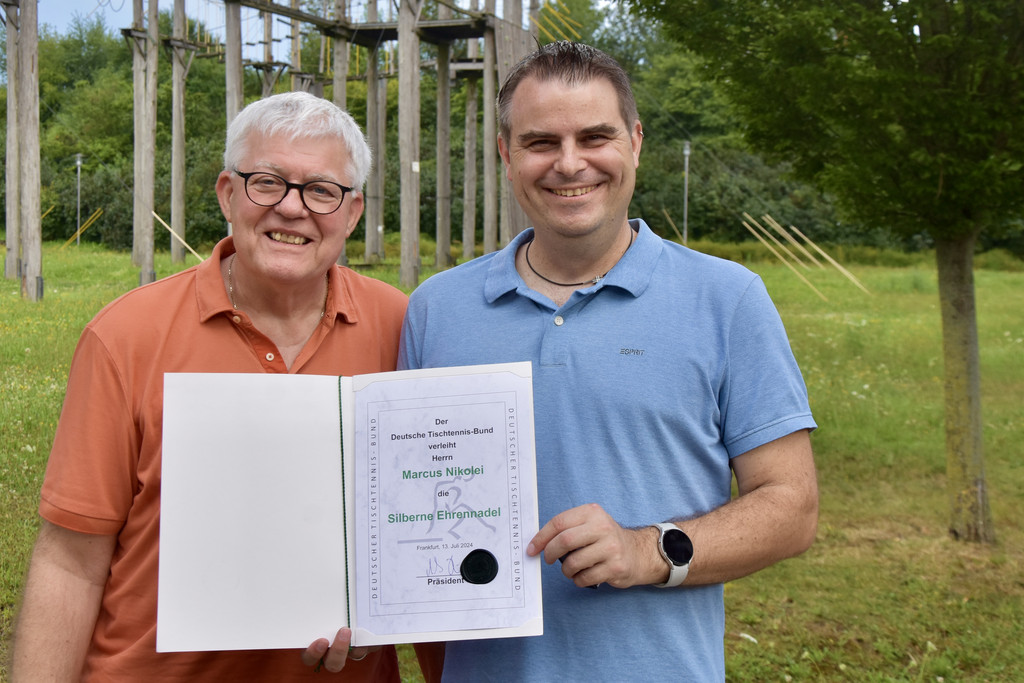 Die DTTB-Ehrennadel in Silber wurde Vizepräsident Jugend Marcus Nikolei bereits am Vortag überreicht.