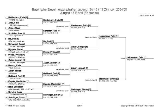 - 13.45 Uhr: Beginn der Finalspiele im Einzel und Doppel