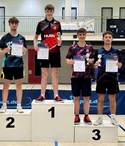 Zwei Titel holte Jonas Rinderer, der bei den älteren Jungen 19 startete. Während Samuel Kuhl (TSV Neuried) und Anna Walter (MTV Ingolstadt) das beste Mixed bildeten, war Rinderer im Doppel mit Noah Heidemann sowie „solo“ erfolgreich. Im Einzel-Endspiel wurde der Topfavorit seiner Rolle mit einem 4:2-Sieg über Überraschungsfinalist Jakob Schäfer (TSV Bad Königshofen) gerecht. Bronze ging hier an Linus Dreykorn (TSV Kornburg) sowie mit André Thiebau (TTC Langweid) eine weitere Turnierüberraschung.