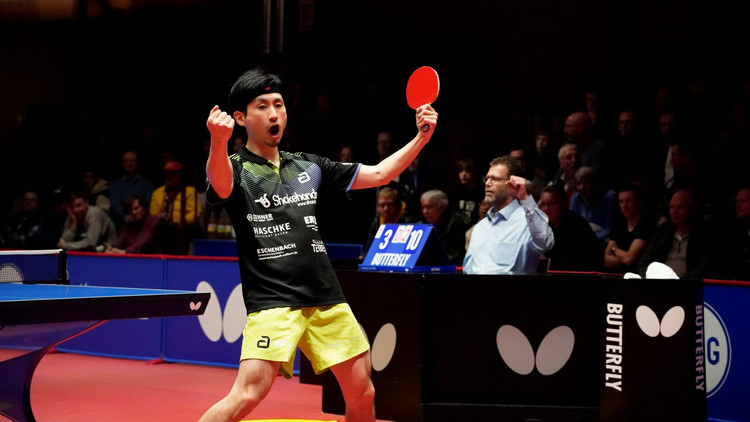Zum Auftakt bot Jin Ueda für eine echte Glanzvorstellung: In drei Sätzen bezwang er Romain Ruiz (12:10, 11:1, 11:7) zur 1:0-Führung. Der Ausgleich erfolgte jedoch prompt: In nahezu punktgleicher Höhe (12:10, 11:1, 11:4) stellte Benedikt Duda im Duell mit Boll-Bezwinger Martin Allegro den 1:1-Pausenstand her. Nach der Pause lieferten sich Filip Zeljko und Adrien Rassenfosse ein episches Duell, in dem Zeljko mehrfach Matchbälle abwehrte und selbst einige vergab. Mit großem Kampfgeist erzwang er im vierten Satz das 19:17 und rang Rassenfosse schließlich im Entscheidungssatz 14:12 nieder. Im abschließenden Einzel lag Jin Ueda gegen Benedikt Duda bereits mit 0:2 zurück, startete dann jedoch eine beeindruckende Aufholjagd. Mit 3:2 gewann er schließlich das Spiel und sicherte den 3:1-Erfolg für den TSV Bad Königshofen, der Dank dieser Leistung seinen Platz unter den Top 4 der Liga festigte.
