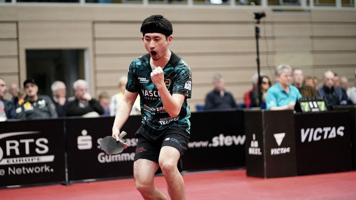 Bei der Begegnung Adrien Rassenfosse gegen Jin Ueda erwarte die Zuschauer ein ähnlich kurioser Spielverlauf. Der Japaner im TSV-Dress brauchte den ersten Satz, um ins Spiel zu kommen. Angefeuert von den Ping-Pong-Ultras, dem Fanclub des TSV Bad Königshofen, sicherte sich Ueda bei „Jin-Jin-Rufen“ die Sätze zwei und drei. Im vierten Satz reichte eine gute Aufholjagd nicht. Für den Sieg im fünften Satz reichte es aber trotzdem.