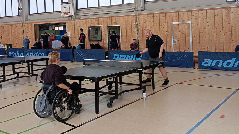 Am Samstag trafen sich Bayerns beste Para-Tischtennisspieler zur 51. Landesmeisterschaft. Den Auftakt machten die Doppelwettbewerbe, die mit spannenden Ballwechseln begeisterten. Im Finale schienen Jakob Steinmetz (TSV Ansbach) und Mario Krug (RSV Bayreuth) zunächst die Oberhand zu haben, doch das routinierte Duo Peter Fenn und Andre Hammerlindl (BSV München) drehte das Match und siegte mit 3:1.