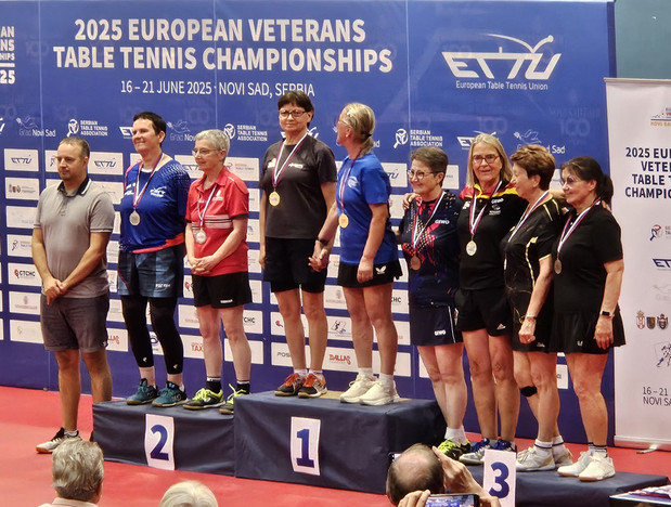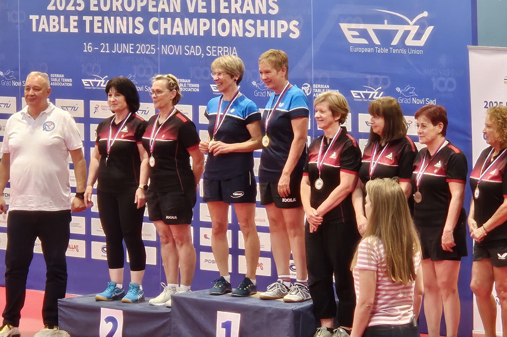 Bei den Deutschen Meisterschaften der Seniorinnen im Rahmen der TT-Finals in Erfurt sicherte sich Karen Hellwig (BCF Wolfratshausen) gemeinsam mit ihrer Partnerin Cornelia Bienstadt den Titel im Damen-Doppel der Altersklasse 60. Nur wenige Tage später ging es für die Linkshänderin direkt weiter zur Senioren-Europameisterschaft nach Novi Sad (Serbien) – mit demselben Ergebnis: Gold!