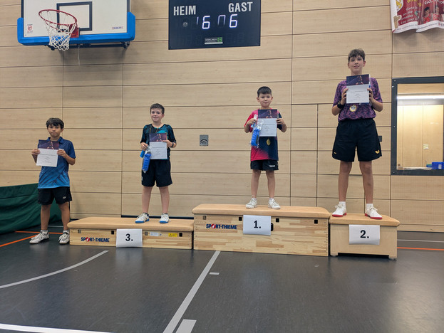 Irrsinnig knapp fiel die Entscheidung über den Turniersieg bei den südbayerischen Jungen 13 aus. Die Winzigkeit von vier Bällen machte am Ende des Tages den Unterschied: Mit einer Endrunden-Bilanz von 6:1 Spielen, 19:8 Sätzen und +47 Bällen machte Felix Zhang (FC Bayern München) das Rennen vor seinem einzigen Bezwinger und Vereinskollegen Eric Zhengyang Guan mit 6:1 Spielen, 20:9 Sätzen und +43 Bällen.
