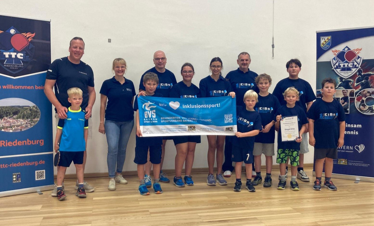 Auszeichnung und Ehre für den TV Riedenburg: Der Verein aus dem Bezirks Oberpfalz-Süd hat das Gütesiegel der Erlebten Inklusiven Sportschule „EISs“ des Behinderten- und Rehabilitations-Sportverbandes Bayern (BVS) erhalten. Riedenburg engagiert. sich für Inklusion und Zusammenhalt im Sport und betreibt eine inklusive Gruppe. Ziel von „Gemeinsam Tischtennis!“ ist es, Kindern und Jugendlichen mit und ohne Behinderung die Freude am Tischtennis näherzubringen.