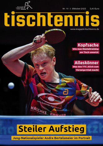 Andre Bertelsmeier ist im Rekordtempo zu der Hoffnung im deutschen Männer-Tischtennis aufgestiegen. Im vergangenen Jahr wurde er zum zweiten Mal Deutscher Jugendmeister, stürmte ins Achtelfinale der EM der Erwachsenen und unter die Top 100 der Weltrangliste. Seit wenigen Wochen spielt der 19-Jährige nun auch in der TTBL – und startete für den TSV Bad Königshofen gleich mit einem Einzel-Sieg. Was hebt Bertelsmeier von anderen Talenten ab? Wieso verlief seine Karriere bislang anders als viele andere? Und warum trauen ihm nicht wenige den Sprung in die absolute Weltspitze zu? tischtennis hat Bertelsmeier getroffen und mit Trainern und Wegbegleitern über ihn gesprochen. Das Portrait von einem, von dem man in den kommenden Jahren wohl noch viel hören wird, gibt es in der aktuellen Ausgabe des Magazins. Neben einer Vorschau auf die Team-EM in Zadar, für die Bertelsmeier ebenfalls nominiert ist, findest du in der Oktober-Ausgabe von tischtennis wie immer Material- und Trainingstipps und Berichte aus dem Amateursport.