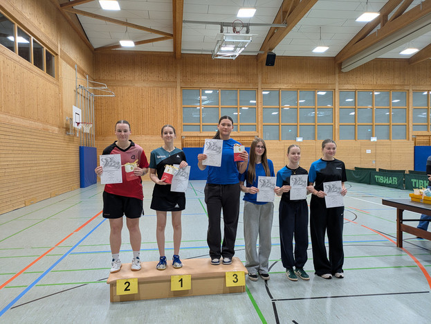Mädchen 19: 1. Marlen Serby (DJK Viktoria Wombach), 2. Ines Baumgartner (TTC Kist), 3. Kiara Steppert (TSV Bad Königshofen)