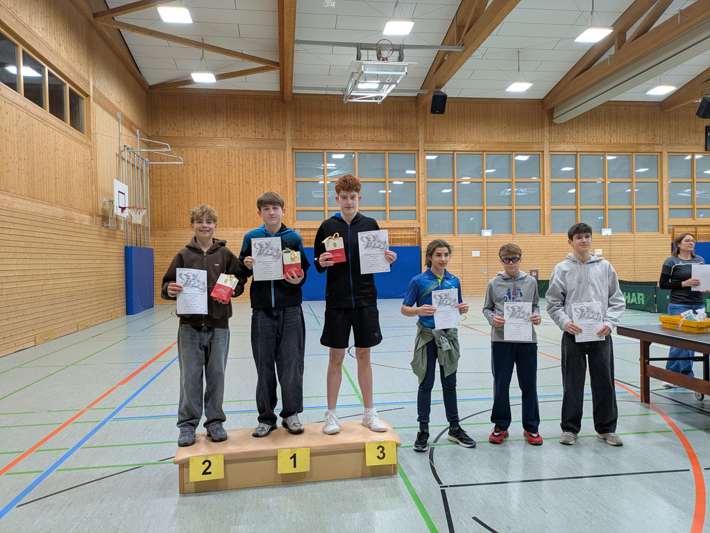 Jugend 13: 1. Lukas Himmelhuber (ASV Burglengenfeld), 2. Niklas Helldörfer (TSV Eintracht Bamberg), 3. Finn Hartmann (Laufer SV), 4. Florian Nieh (TS BSG Herzogenaurach), 5. Karl Lungkwitz (TTC Unterzettlitz)