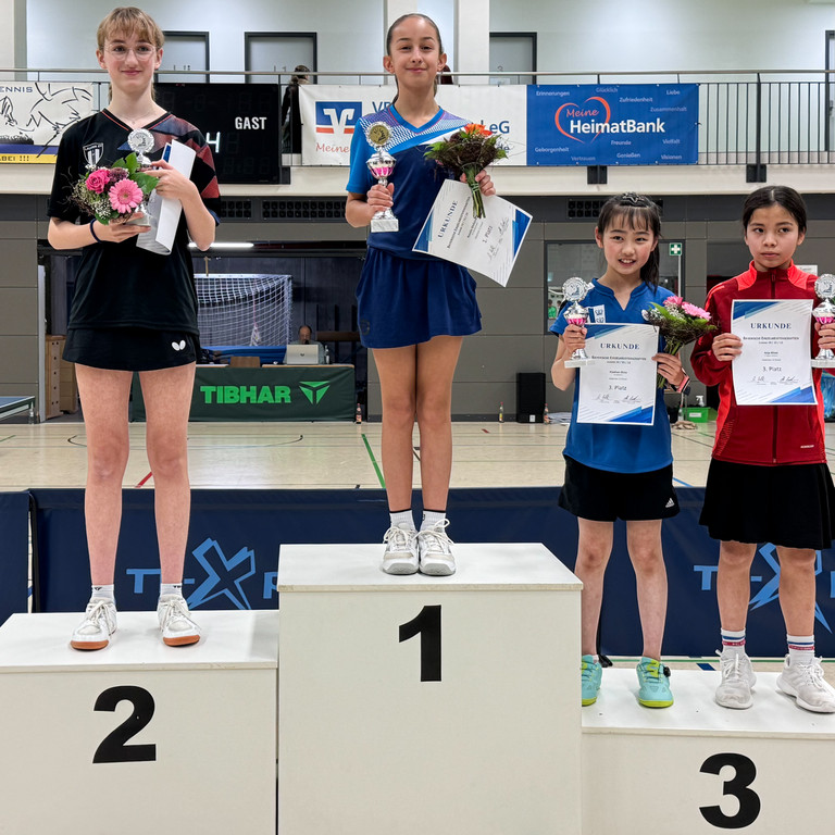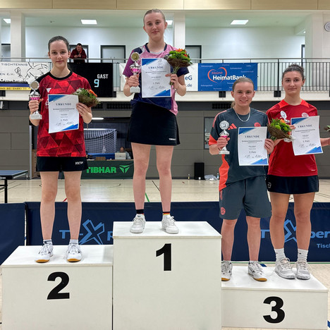 Bei den Mädchen 13 musste Rosalie Ehrlicher (TSV Bad Rodach) schon früh einige bange Momente überstehen, um am Ende als strahlende Titelgewinnerin aus der Halle zu gehen. Die spätere Siegerin erreichte die Endrunde nur hauchdünn als Gruppenzweite – das bessere Ballverhältnis gegenüber der Gruppendritten Carlotta Gottwald (TTC Kahl) gab den Ausschlag. In der Endrunde steigerte sich Ehrlicher und zeigte in engen Begegnungen starke Nerven, insbesondere im Finale, das sie gegen Larissa Wolff (Laufer SV) in fünf Sätzen für sich entschied. Bronze ging an Anja Klose (FC Bayern München) und Xiaohan Zhou (SV Helfendorf). Das beste Doppel bildeten die „Besties“ Rosalie Lex (TSV Chieming) und Luisa Martin (MTV Ingolstadt).